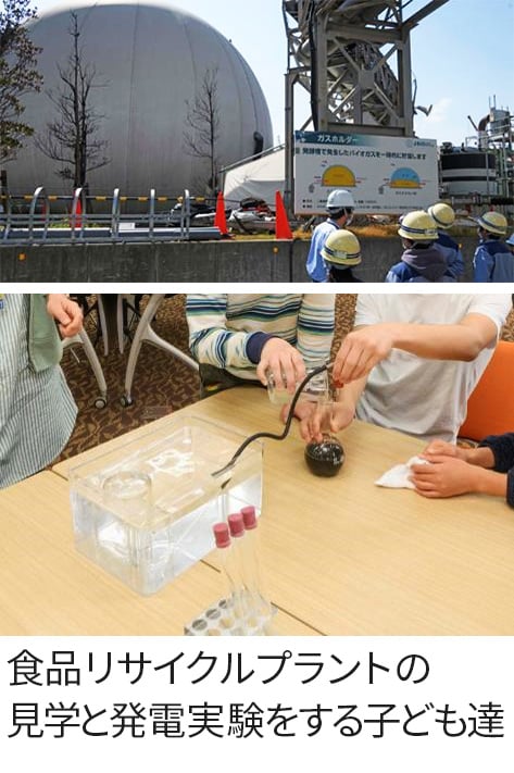 食品リサイクルプラントの見学や、そこで取り組まれている生ごみのメタン発酵ならびにメタンを活用した発電の原理を学ぶ理科実験を実施しました。