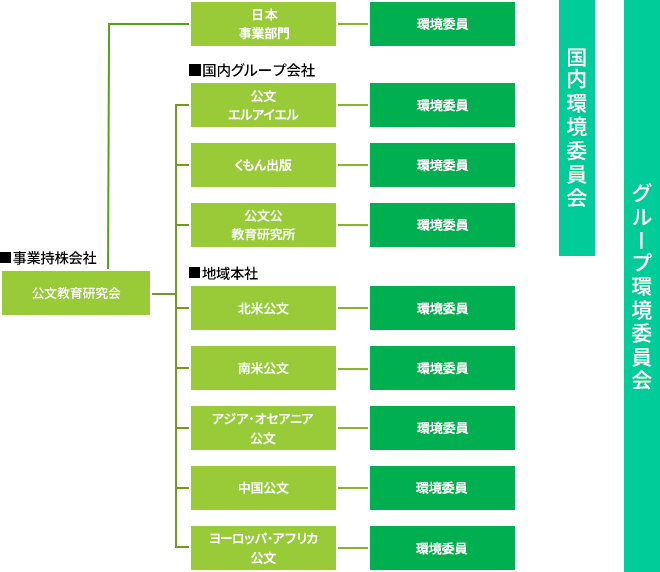 KUMONグループは、グループ会社の本社に環境委員を配置し、環境活動を推進しています。