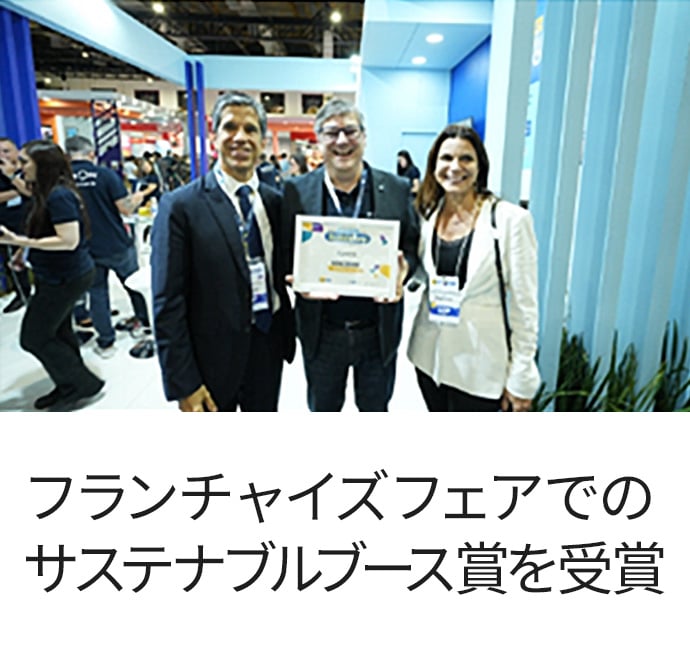 フランチャイズ業界では、環境・社会・ガバナンス(ESG)に取り組む企業が増えています。フェア開催中、各ブースが、どれほど持続可能性にコミットしているのかを検証されます。具体的には、水や電気の消費量の削減、ブースのリサイクル可能性、食品廃棄量、温室効果ガス排出量などです。さらに、イベント主催者はアンケートにより、リサイクル素材の使用状況、イベントで使用された照明器具の種類と量、電球の廃棄方法、ブース専用の空調使用、配布物の素材などについても調査していました。