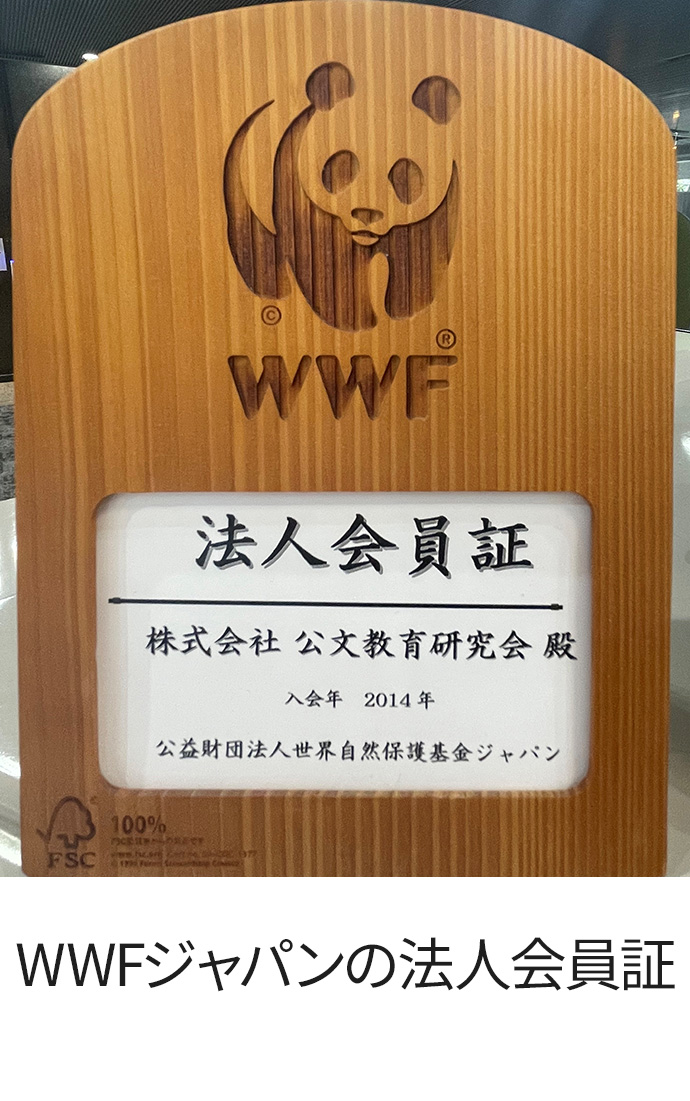 KUMONグループはKUMON森の基金によって、世界100カ国以上で活動する地球環境保全団体であるWWFネットワークの一員であるWWFジャパンを2014年より支援しています。