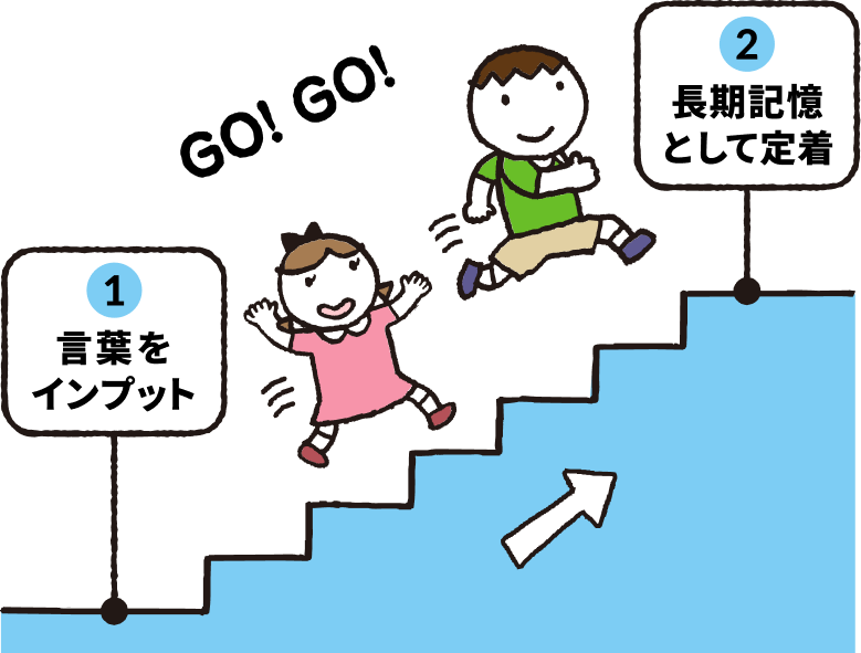 いきなり会話から始めるのではなく、まずは土台となる言葉をインプットします。だから英語に親しみながら、将来アウトプットするための力を無理なく蓄えられます。