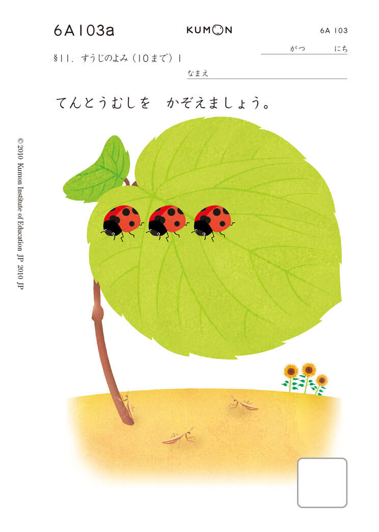 KUMONには、幼児さんにも楽しく学べるプリント教材がそろっており、この教材を使って言葉や数に親しんでいくことから始めます。これらの教材はどれも、小さなステップで少しずつ先へ先へと進むことができるようになっています。