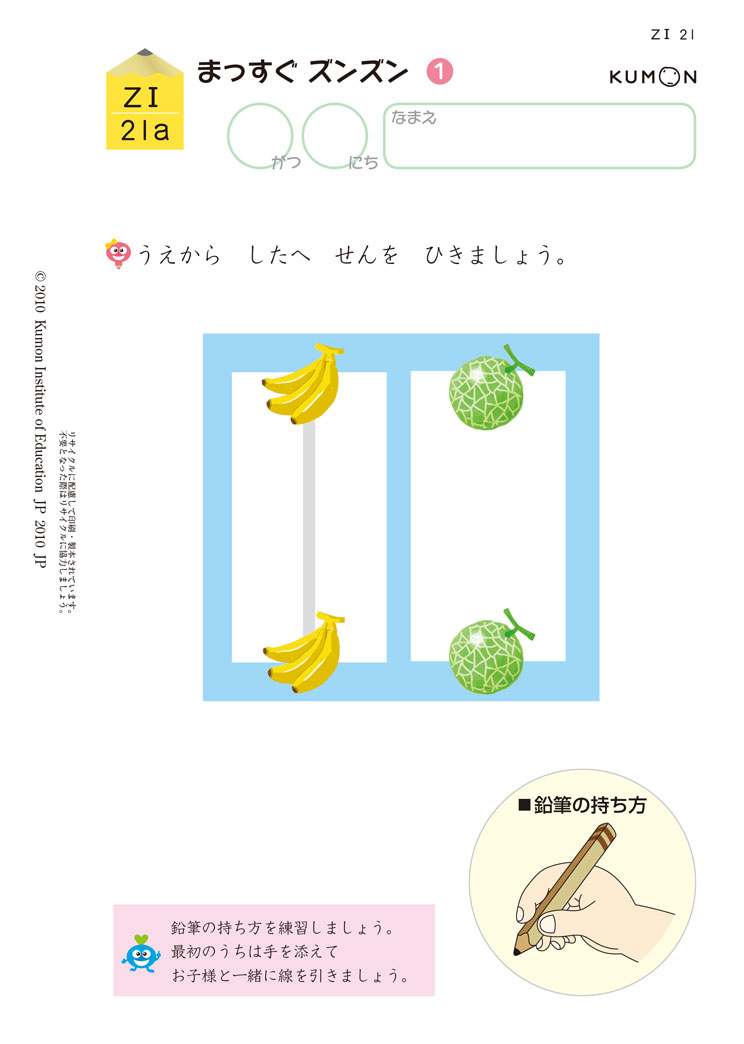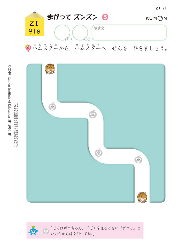 鉛筆をまだ上手に持てない、思うように線が書けないというお子さまは、「ズンズン教材」で楽しく、運筆力、集中力などを身につけられます。