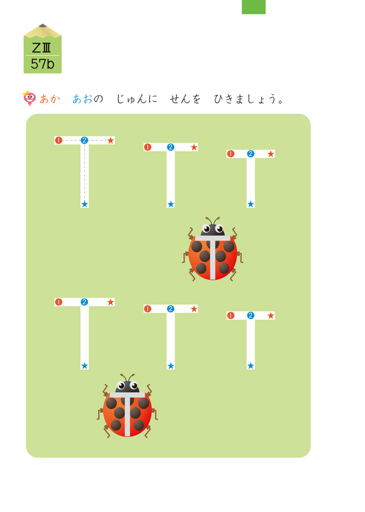 線を書いたり、簡単な文字を書いたりすることから始めて、無理なく書く力を身につけていきます。