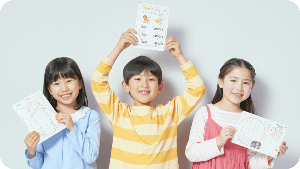 公文式学習では、小学校に入学したばかりのお子さまでも無理なく、基礎学力と学習習慣が身につきます。その秘訣は「ちょうどの学習」「スモールステップ」「できた!の経験」にあります。