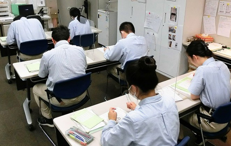 学習するスタッフ一人ひとりが真心と笑顔で活躍できるよう、これからも私たちは公文式学習の導入を通じて、京阪スマイルハート株式会社の活動に貢献してまいります。