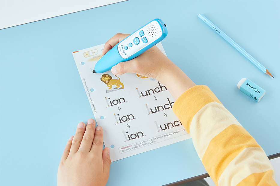 KUMONには、幼児さんにも楽しく学べるプリント教材がそろっており、この教材を使って言葉や数に親しんでいくことから始めます。これらの教材はどれも、小さなステップで少しずつ先へ先へと進むことができるようになっています。