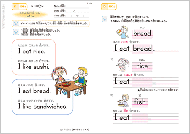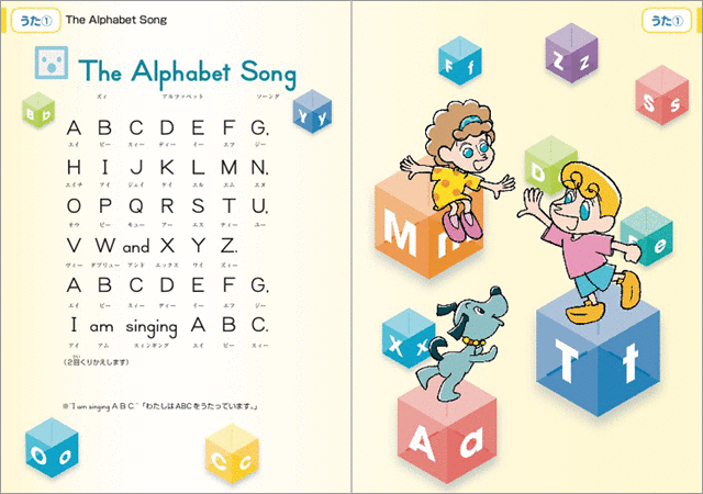 教材はイラストやうたを通して、小さなお子さまでも楽しく英語に親しめるよう設計されています。