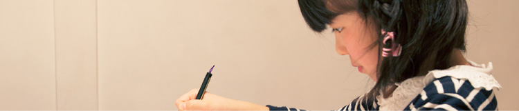 初めて書道の筆を持ったのは、何かのイベントで毛筆体験コーナーに参加した時。筆を使って文字を書くっておもしろいなと思いました。それから、ママにお願いして公文書写の教室に通い始めたのです。初めは分からないことばかりで緊張したけど、先生が「筆は、お箸を持つ時と同じように握ればいいよ」と丁寧に教えてくれました。トメとかハライとか、先生が教えてくれることに気をつけて書いたらどんどん字が上手になって。「やればできるんだ」と思えるから、この頃は文字を書くことが楽しいです。