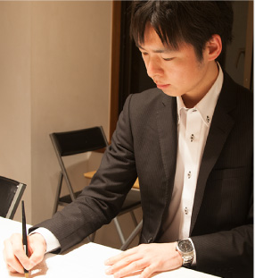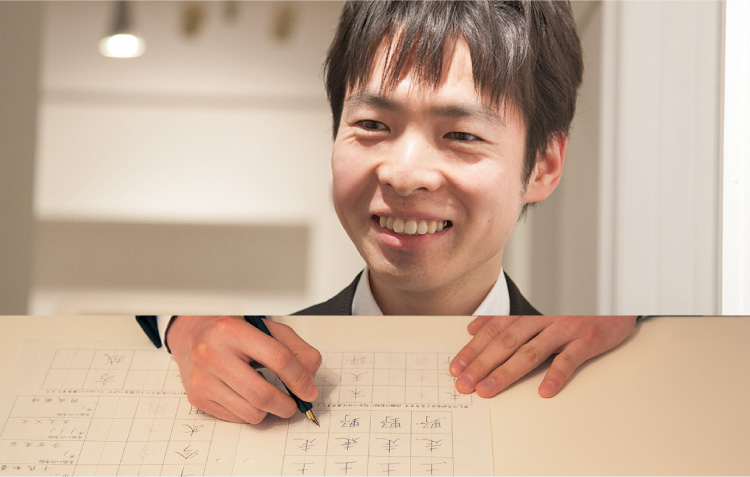 もともと自分の文字にコンプレックスがあったので、以前から字を習いたいと考えていました。そこで一年ほど前、引っ越しを機に公文書写教室へ通い始めたのです。仕事との両立を考えると通信講座という手段もあったのですが、僕の場合は普段の生活と離れて文字と向き合う、書写教室のスタイルが合っていたのだと思います。それに、教室の先生の存在は大きいですね。先生が見本を書いてくださる際の筆の動きを間近に見て学べること、また学習中も直接ご指摘くださることは、教室に通ってこそのメリット。やはりコミュニケーションを通してこそ、伝わるものがあると思います。