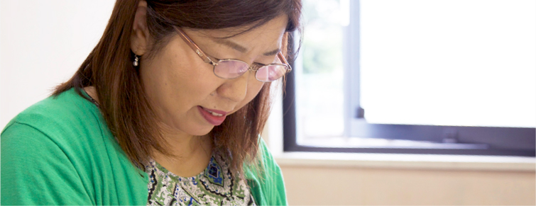 教室ではいつも先生が優しく指導してくださいます。書き方はもちろんのこと、筆の持ち方や姿勢まで本当にていねいです。もう習い始めて約2年、最近分かってきたのですが文字は「書く手」と「呼吸」のタイミングが大事なんですね。例えるなら、手先だけでなく体全体で書く感じ。少しコツが分かると励みになります。
