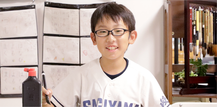 書写教室に通いはじめたのは、毛筆の上手な友だちの文字を見て自分もうまくなりたいと思ったからです。最初は真っすぐ線を引くこともできなかったけど、学習を続けていくうちに少しずつ上手になって、今年の2月には市内の小中学生が応募する「市展」に入選することができました。