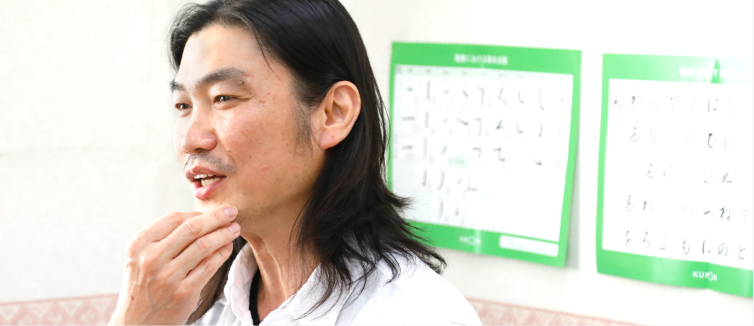 例えば、教材のくり返し学習。これは、物事を身につける上で一番大切なことですが、同時になかなか面倒でもあります。子どもだけでなく、大人でも継続するのは大変と感じる人もいると思います。教室の生徒さんが素直に教材に取り組んでいるのは、褒めて認めてやる気を引き出してくれる先生のおかげです。もちろん、私もその一人。先生と話すのが楽しくて、教室に行くとついつい長話してしまいます。