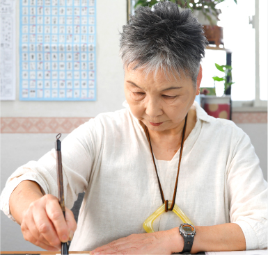 私は今、教室に通うことが楽しくて仕方ありません。一週間学んだことを先生に見ていただけるからです。先生はいつも今の自分に適切なアドバイスをくださいます。「こんなに大勢の生徒さんがいらっしゃるのに、一人ひとりよくここまでていねいに見てくださっている」と感心するくらい。それに書への造詣が深くて、中国の古典のお話など毎回わくわくしながら聞いています。