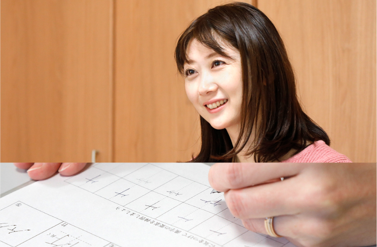 教室の先生が親切にご指導くださったおかげで、娘はすぐに右手に持ちかえ自然に文字を書けるようになりました。私のほうは、この年になって右手にかえるのは難しいので左手で学習しています。ペンの持ち方や運筆など、右手と勝手が違う部分はありますが、納得がいかないときは教材の端に何度も書いて練習したり、先生に相談したりします。先生も「右手とまったく同じように書くのは難しいけど、正しい文字が書けているから大丈夫よ」と励ましてくださるので自分のペースで徐々に学習を進めています。