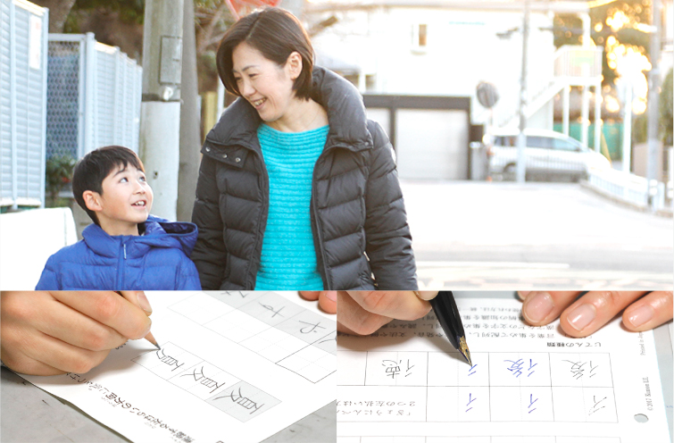 お子さん:1年ほど前から、お母さんと二人で書写教室に通っています。先に入会したのは、僕のほう。お母さんは後から入会しました。