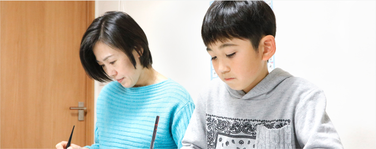 お母さん:「公文の教室」というと子どもさんのイメージが強かったのですが、息子の送迎で教室に行くと大人の方も大勢学習していらっしゃいます。私も小学校時代書道教室に通っていたことを思い出し、もう一度チャレンジしてみたくなりました。もう一つは、息子との時間を作りたかったから。成長を間近に見られることは母親としてうれしいことです。