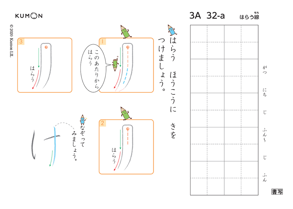 | 3A | 姿勢、持ち方、運筆(ひらがな・数字・アルファベット) | ||