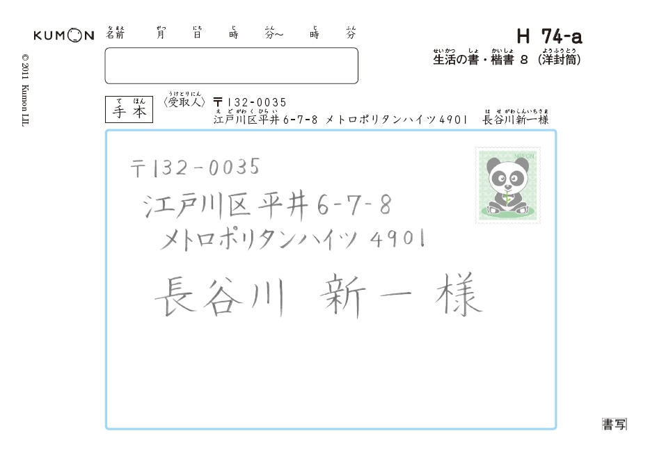 | H | 日常の書・楷書(ノート・連絡帳・原稿用紙・はがきなど) | ||