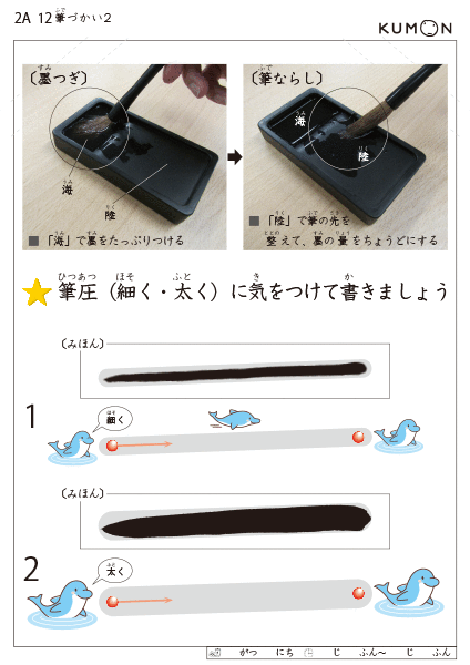 - かきかた、ペン習字と併せて学習すると、ペンや鉛筆で書く線が毛筆のように柔らかく美しい線で書けるようになります。