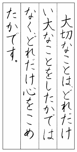 主に子どもが学習しています。級は10級~1級、段は初段から十段まであり、審査の結果、最優秀となった作品をご紹介いたします。