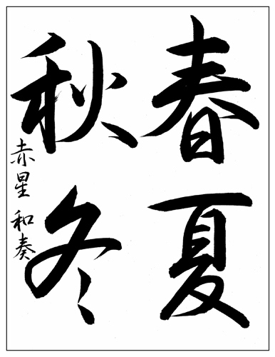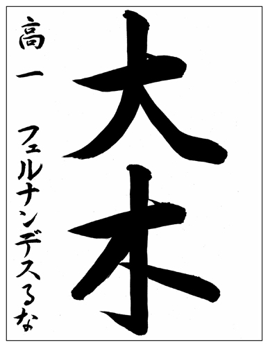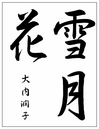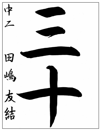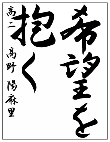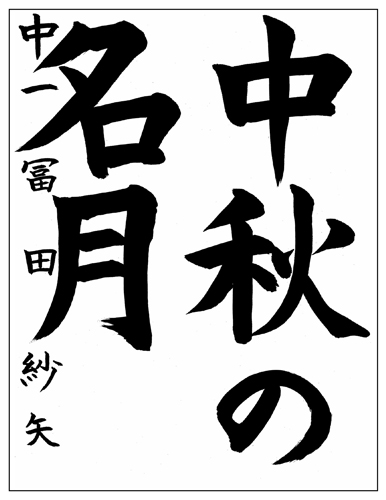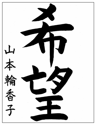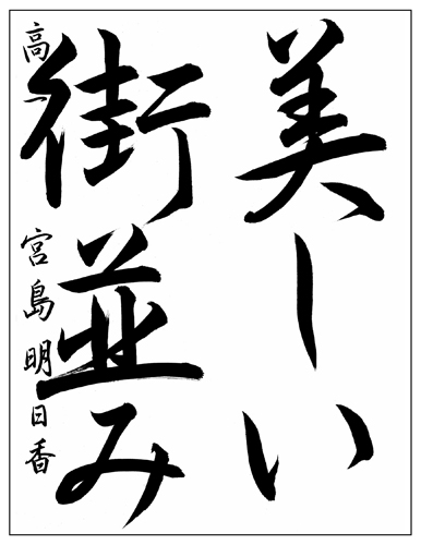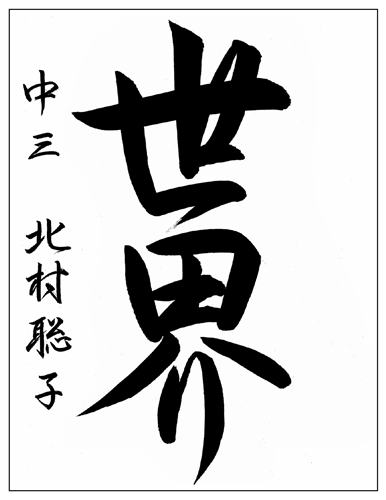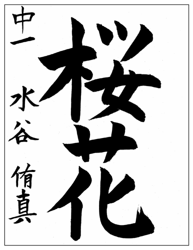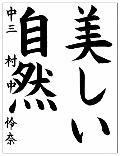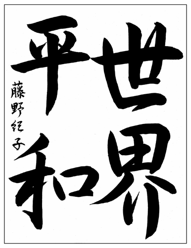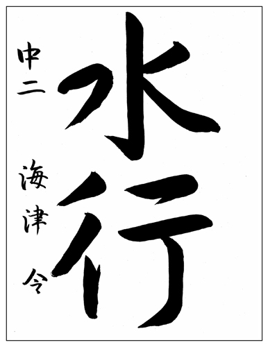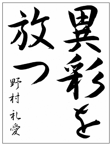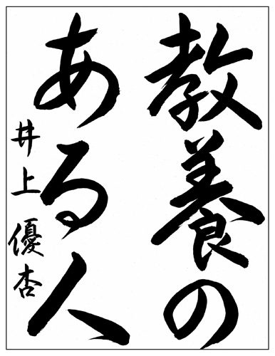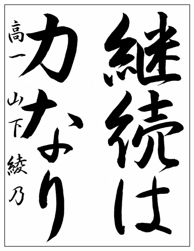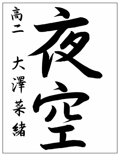 毛筆は子どもから大人まで学習しています。級は10級~1級まで、大人と子どもで分けて審査します。段は初段~十段まで、大人子ども分けずに審査します。審査の結果、最優秀となった大人の作品をご紹介します。